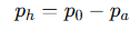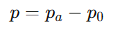 Mutlak basınç atmosfer basıncından düşük olduğunda, aradaki farka vakum basıncı ( p ₕ ) denir ve şu şekilde ifade edilir: