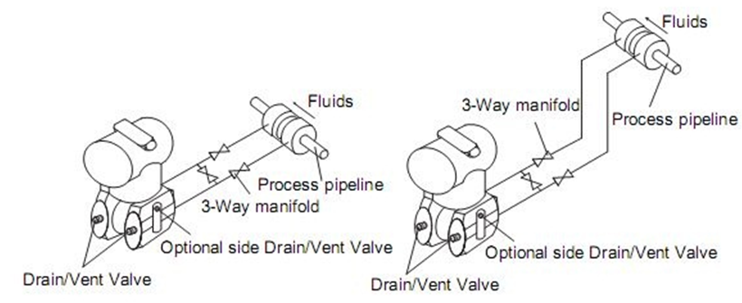 - Sıvı servisi için, darbe borusunu vericiden işleme doğru yukarı doğru (≥1/12) eğin.